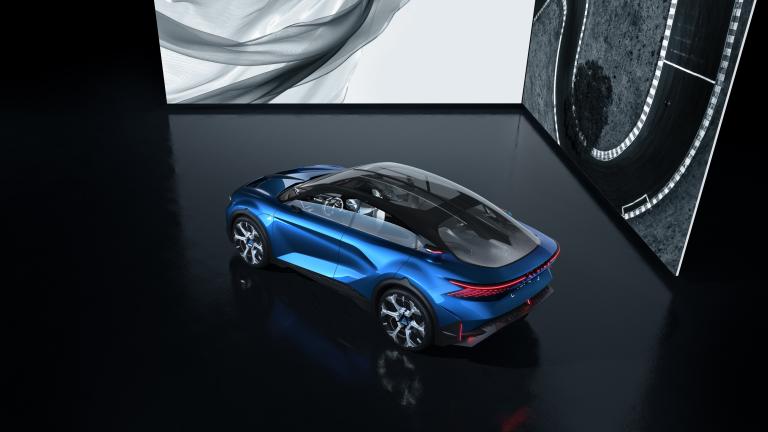 Le véhicule est habillé d'une teinte bleu Specular aux multiples reflets, qui change de tonalité selon la lumière pour accentuer les lignes affutées du show-car. À l'avant et à l'arrière, un bandeau lumineux minimaliste et high-tech, accompagné d'une nuée de triangles illuminés baptisée "Cosmic Dust", confère à l'A390_? une signature lumineuse aussi innovante qu'élégante.