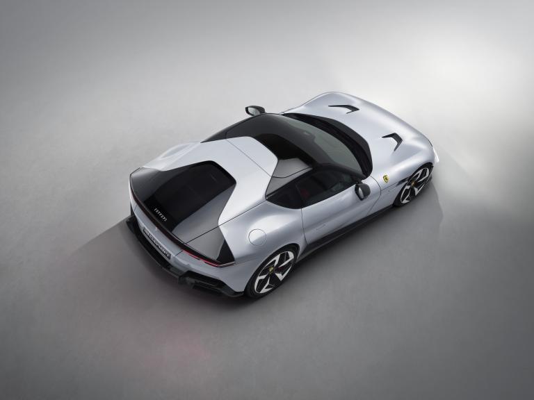 Le châssis de la voiture, entièrement en aluminium, est caractérisé par une réduction de 20 mm de l'empattement par rapport à celui de la 812 Superfast, favorisant ainsi une augmentation de 15 % de la rigidité torsionnelle. Ce châssis amélioré aide non seulement à la précision de la suspension mais contribue également à une répartition optimale du poids de 48,4 % à l'avant et de 51,6 % à l'arrière (47,8 % à l'avant et 52,2 % à l'arrière pour la version Spider), ce qui renforce la stabilité et l'agilité de la voiture dans les manœuvres à haute vitesse. Le poids à sec du véhicule est de 1560 kg (1620 kg pour la version Spider), un rapport poids-puissance de 1,88 kg/ch (1,95 kg/ch) pour la Spider), ce qui en fait un modèle exemplaire non seulement en termes de performance pure mais aussi en termes de maniabilité et de réponse dynamique.