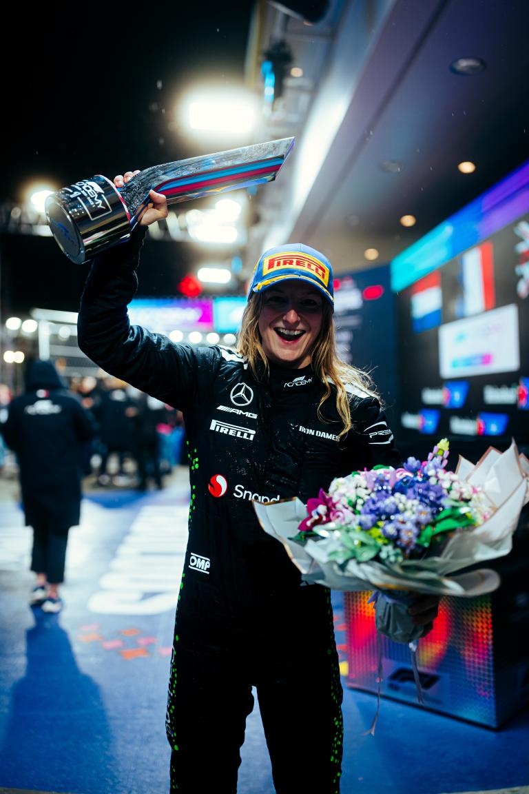 En tête du championnat depuis la manche de Montréal, la pilote Mercedes a finalement validé sa couronne lors de la quatorzième et dernière course de la saison disputée dans les rues de Las Vegas. Cinquième sur la ligne d'arrivée, elle a conservé une avance de 15 points sur sa principale rivale, Maya Weug de la Ferrari Driver Academy, troisième à l'arrivée.