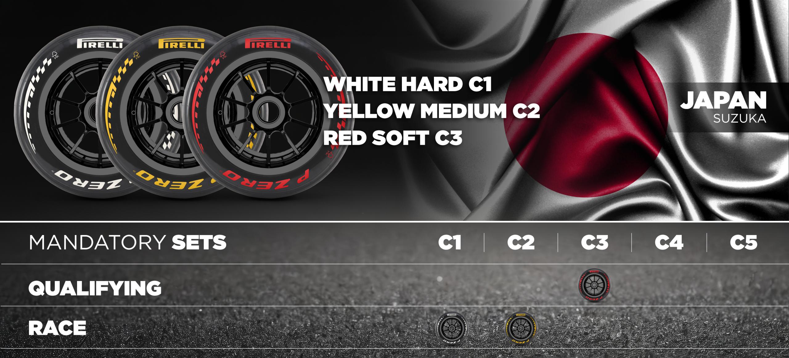 En 2026, Suzuka accueillera le Grand Prix du Japon 2026 du 27 au 29 mars, avec une sélection logiquement orientée vers les pneus les plus durs de la gamme. Pirelli a retenu les composés C1, C2 et C3, reconduisant une configuration dictée par les exigences élevées du circuit japonais.