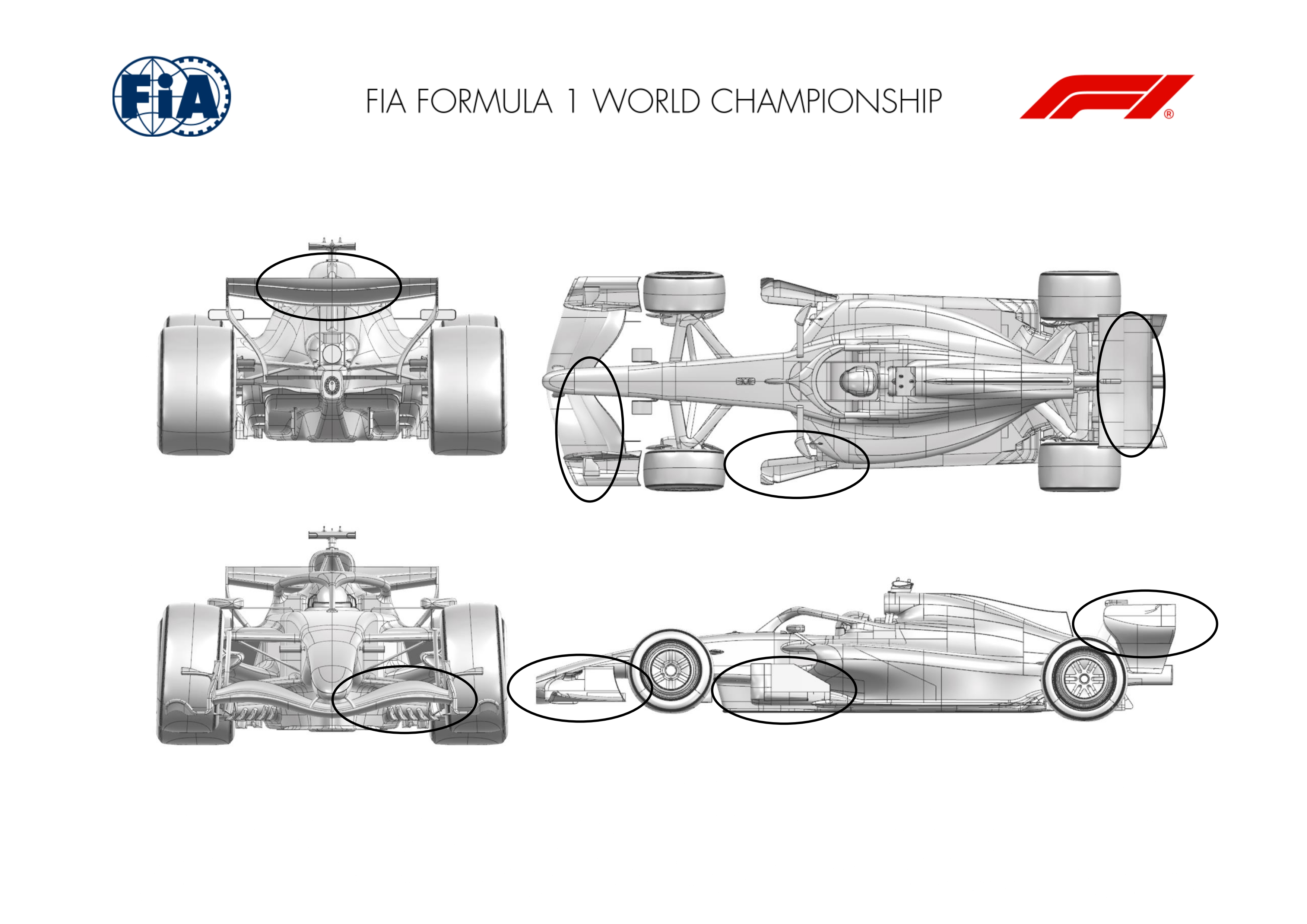 Enfin, Mercedes a revu l'aileron arrière avec un cambrage plus important des éléments. Cette modification vise à augmenter la charge générée par l'aileron tout en conservant un compromis acceptable entre appui et traînée. La corde et l'orientation des éléments ont été ajustées afin de trouver un équilibre entre le coefficient de portance lorsque le système de réduction de traînée (Straight Mode) est fermé et la traînée générée lorsqu'il est ouvert.