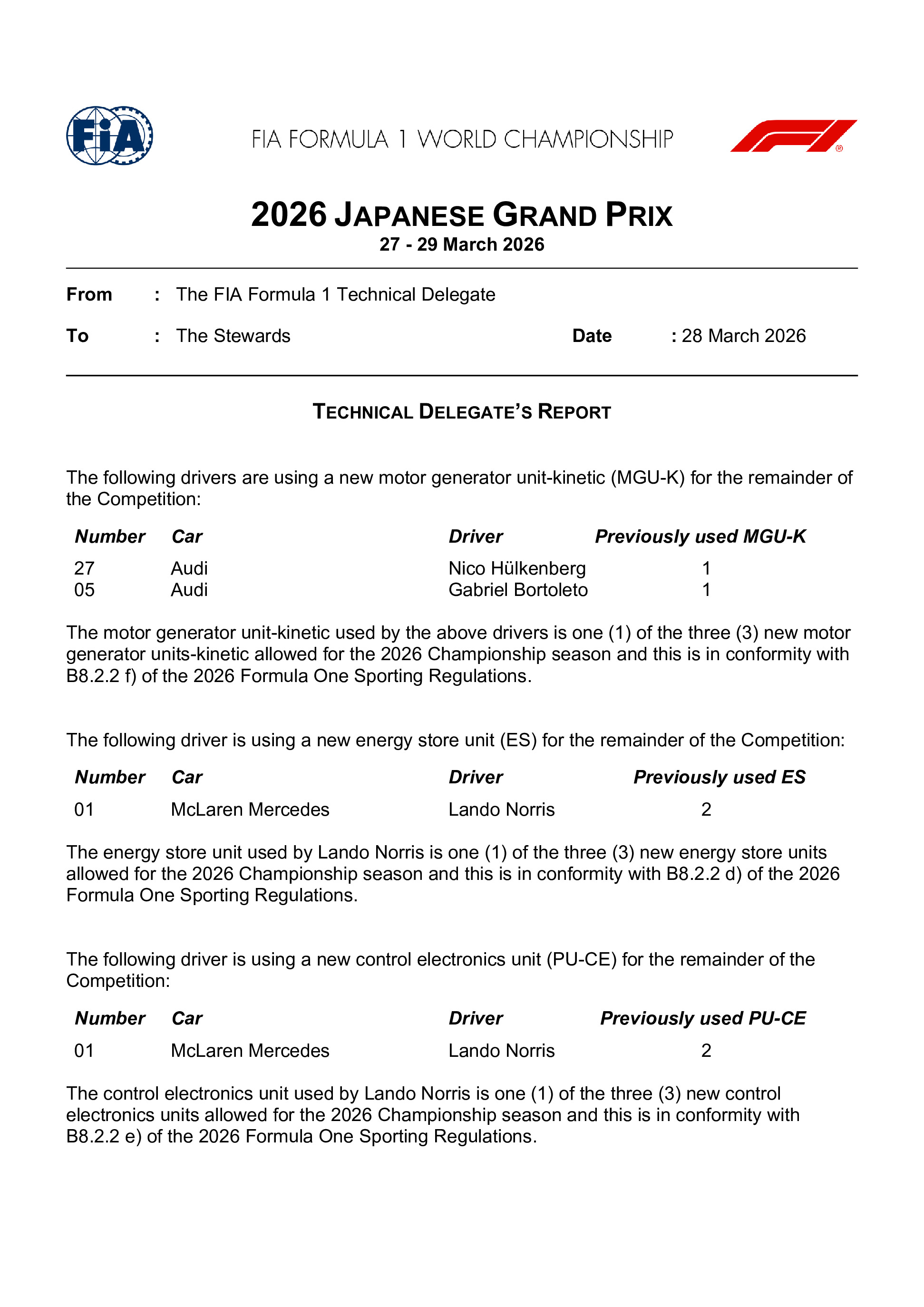 Changements de pièces moteur en ce deuxième jour à Suzuka, Norris se rapprochant dangereusement de pénalités en changeant sa batterie et son unité de contrôle...