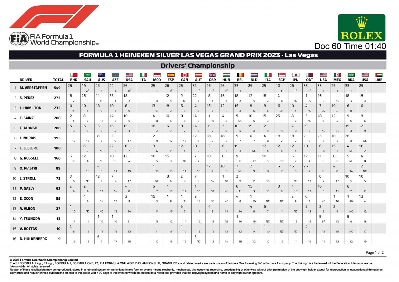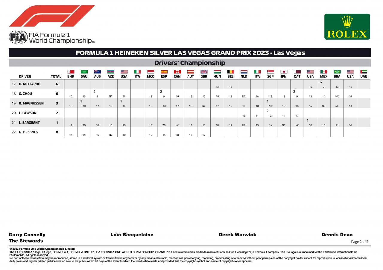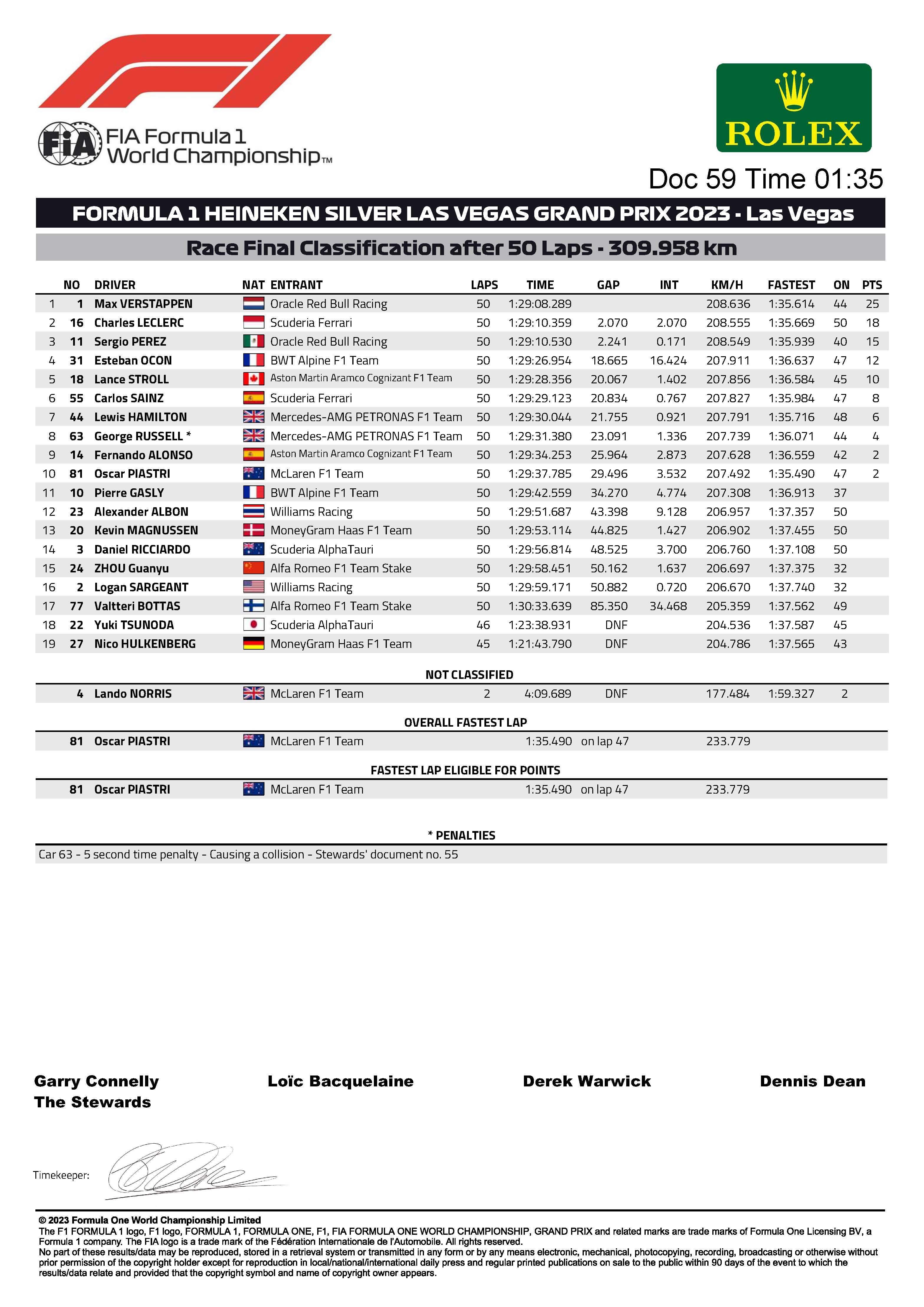 Résultats du Grand Prix de F1 de Las Vegas 2023