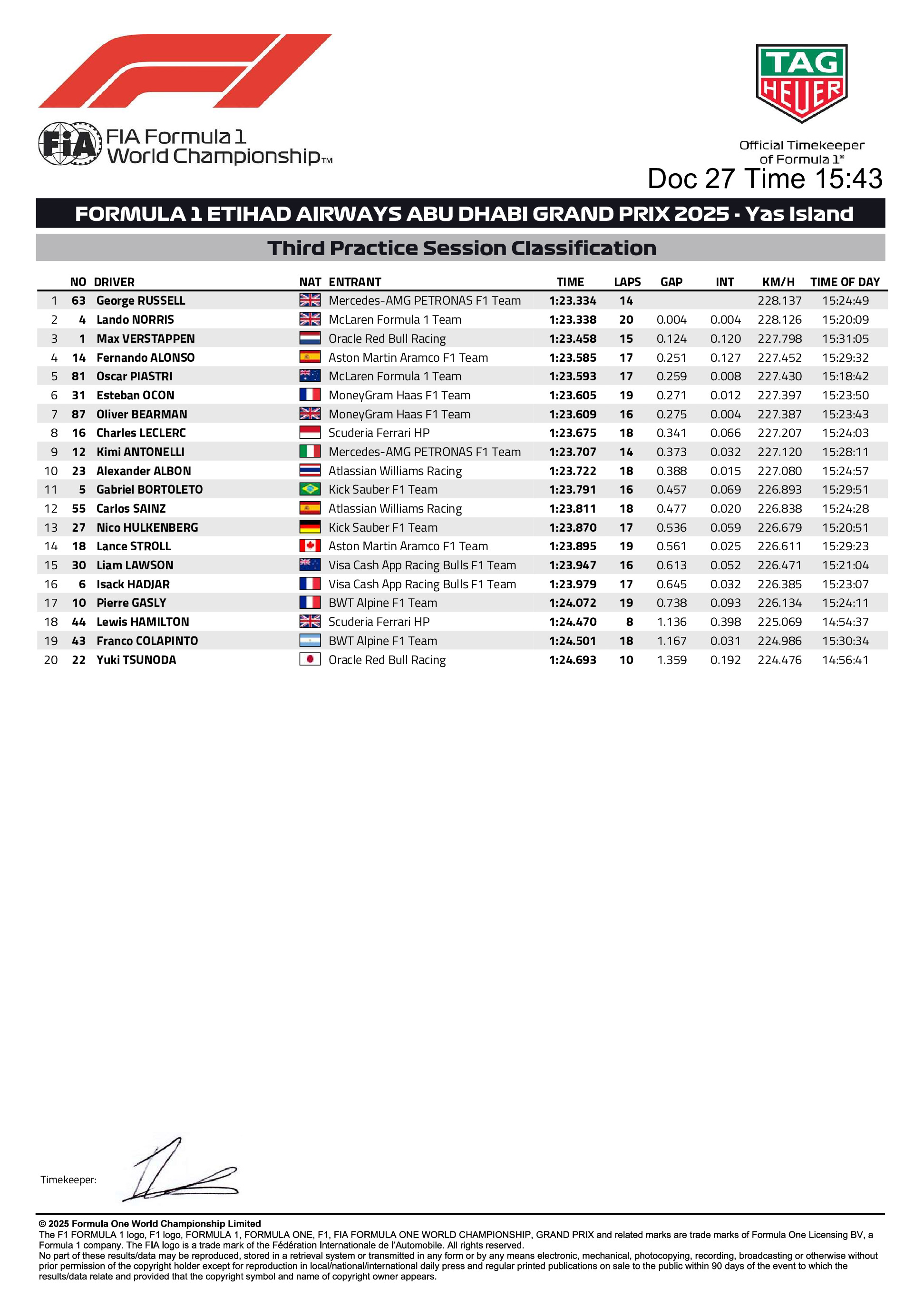 Ce Grand Prix s'ouvre ainsi avec des lignes théoriques très nettes, mais un contexte suffisamment instable pour susciter des bifurcations rapides. Entre un arrêt unique solide, un risque de graining difficile à anticiper, un pneu tendre encore mystérieux et une bataille au sommet où chaque décision pèse plus lourd qu'à l'accoutumée, Yas Marina pourrait livrer un final de saison où la stratégie comptera au moins autant que la performance pure.