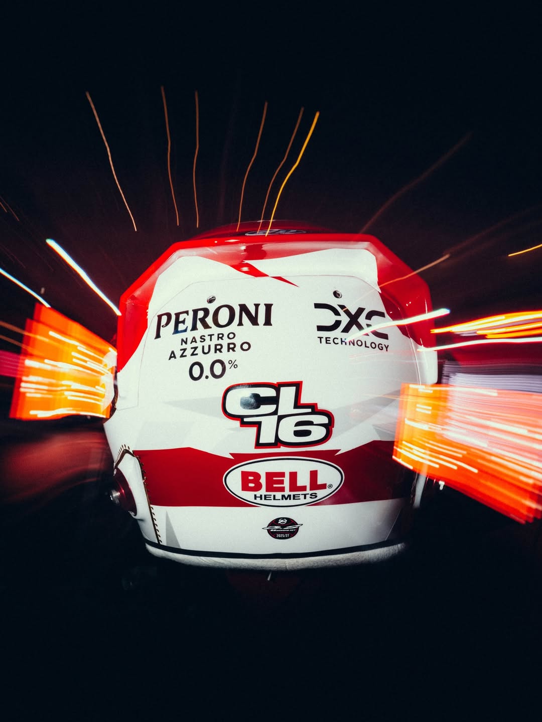 Pour fêter ses 150 Grands Prix de F1 avec la Scuderia Ferrari, Charles Leclerc a un casque spécial pendant le week-end à Abou Dabi, dernier de la saison 2025.