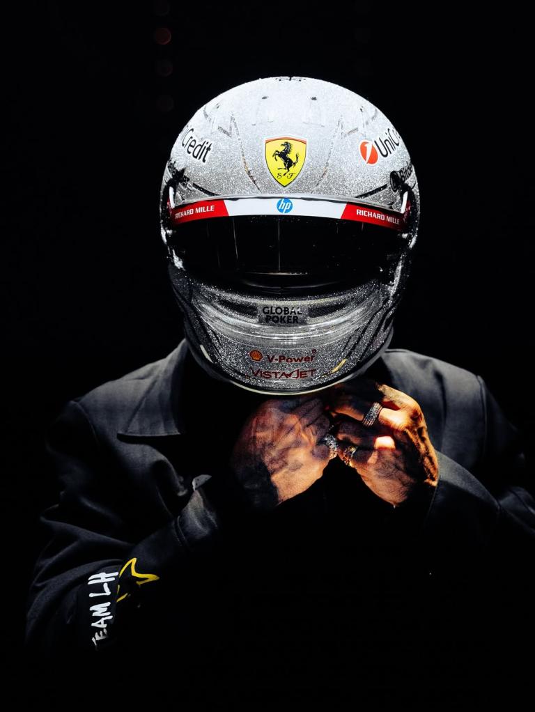 Pour Las Vegas, Lewis Hamilton adopte un casque qui joue pleinement avec l'esthétique et la "bling-blinguerie" de la ville.