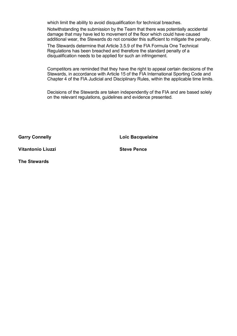 Les commissaires sportifs du Grand Prix de Las Vegas ont officiellement disqualifié Oscar Piastri - alors classé quatrième - à l'issue de la course, après inspection technique montrant une usure excessive de la planche (plank) de sa McLaren MCL39. La décision repose sur une non-conformité à l'article 3.5.9 du règlement technique de la Formule 1, constatée et confirmée lors de plusieurs mesures.