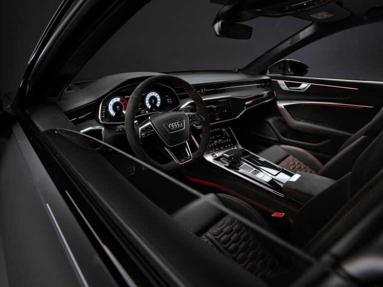 Le pack dynamique RS est un équipement standard pour cette version. Il embarque l'augmentation de la vitesse maximum, la direction intégrale dynamique (la mise à jour logicielle spécifique aide le conducteur avec des corrections de direction actives sur les essieux avant et arrière) et le différentiel sport quattro sur l'essieu arrière. Pour le pack "RS Dynamics plus" qui augmente encore plus la vmax et passe les disques au système céramique, il faudra repasser à la caisse. En sachant que les freins céramiques sont 34 kg plus légers que leurs homologues en acier, pourquoi se priver après tout ?