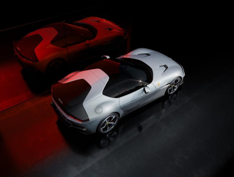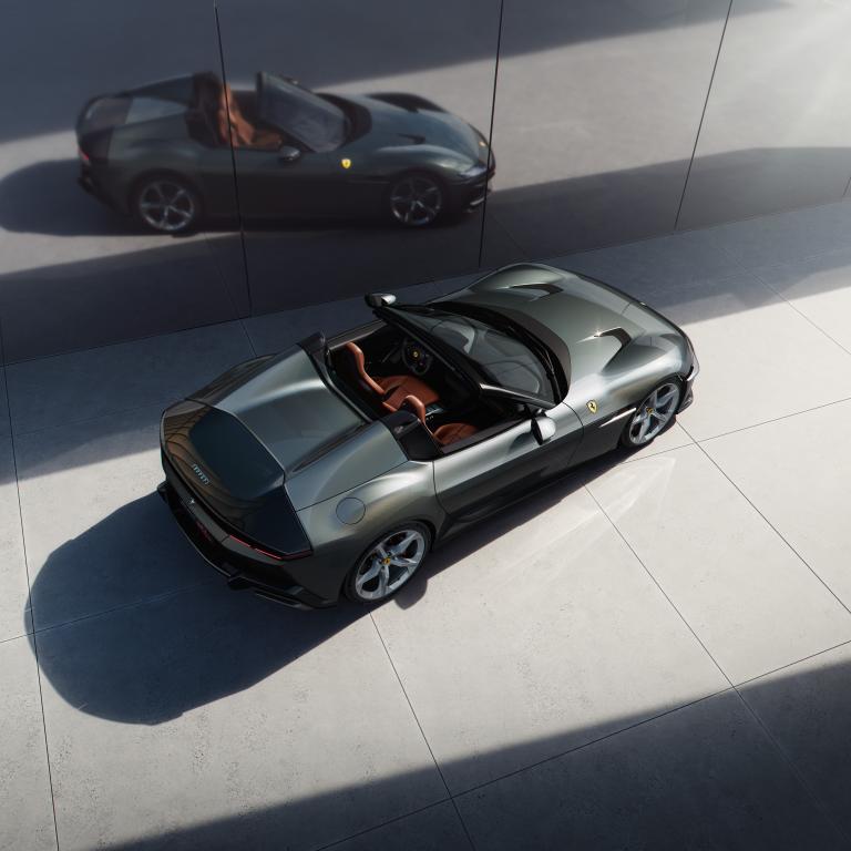 Le châssis de la voiture, entièrement en aluminium, est caractérisé par une réduction de 20 mm de l'empattement par rapport à celui de la 812 Superfast, favorisant ainsi une augmentation de 15 % de la rigidité torsionnelle. Ce châssis amélioré aide non seulement à la précision de la suspension mais contribue également à une répartition optimale du poids de 48,4 % à l'avant et de 51,6 % à l'arrière (47,8 % à l'avant et 52,2 % à l'arrière pour la version Spider), ce qui renforce la stabilité et l'agilité de la voiture dans les manœuvres à haute vitesse. Le poids à sec du véhicule est de 1560 kg (1620 kg pour la version Spider), un rapport poids-puissance de 1,88 kg/ch (1,95 kg/ch) pour la Spider), ce qui en fait un modèle exemplaire non seulement en termes de performance pure mais aussi en termes de maniabilité et de réponse dynamique.