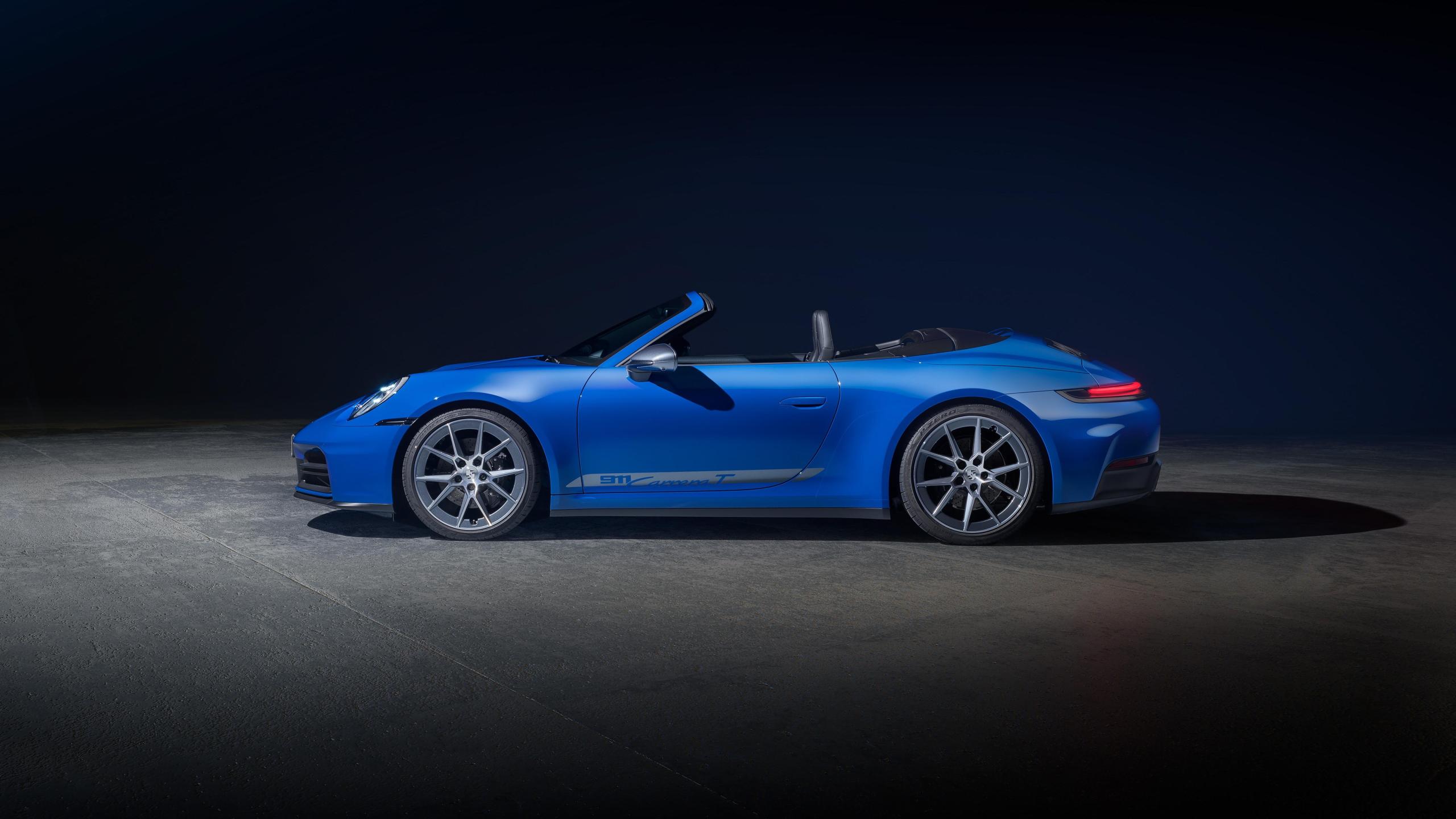 Offerte en Coupé et, pour la première fois, en Cabriolet, cette version se concentre sur l'essentiel avec un allègement massif et une boîte manuelle à six rapports de série. Grâce à une isolation sonore réduite, des vitres plus légères et des sièges baquets en option, la Carrera T affiche jusqu'à 42 kg de moins que la Carrera standard, atteignant 1478 kg sur la balance dans sa configuration la plus légère.