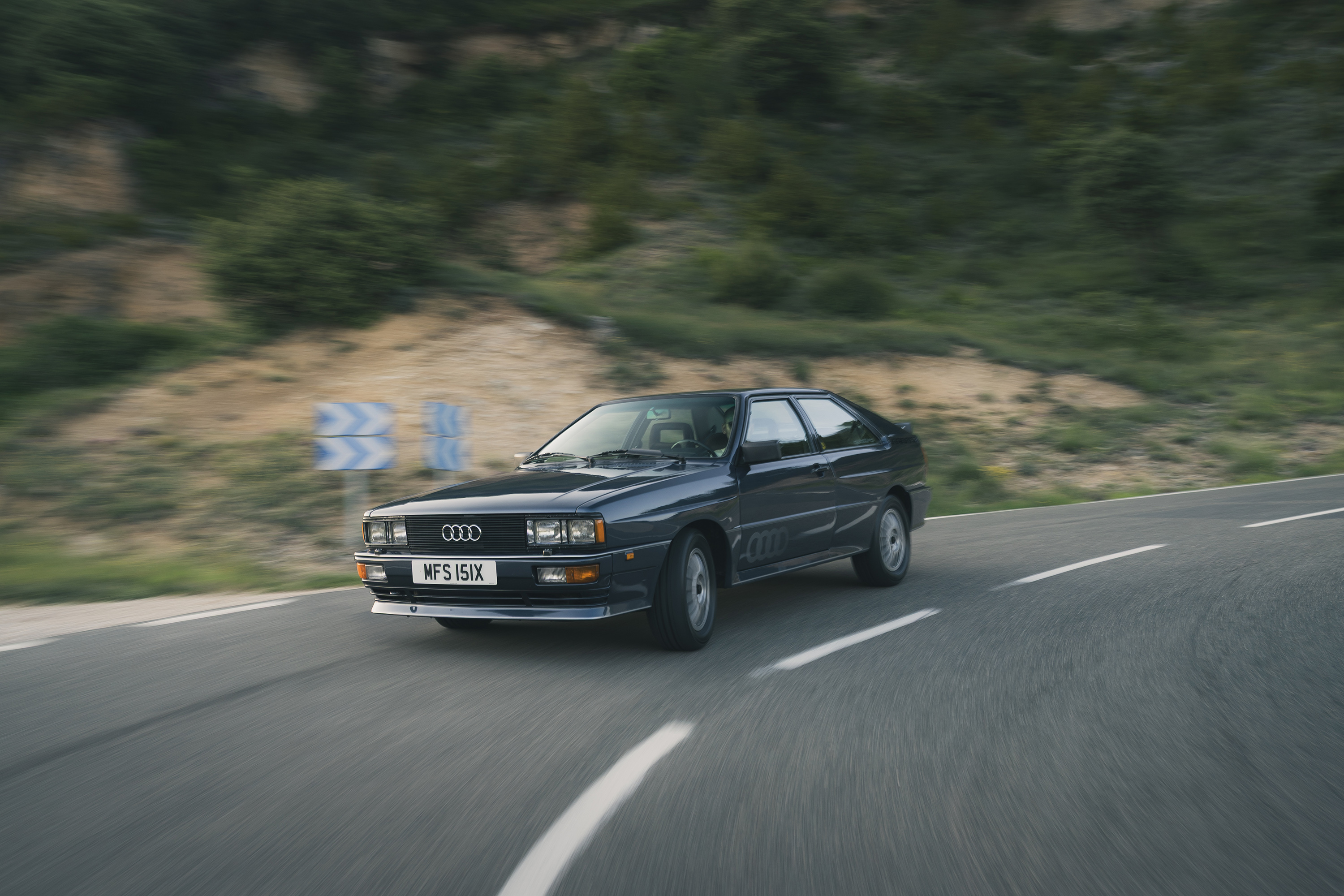 En 1980, l'Audi quattro de route est animée par un cinq cylindres turbo délivrant 147 kW (200 ch) à son lancement. En compétition, la même recette offre à Audi le titre constructeurs en Championnat du monde des rallyes en 1982 ; Hannu Mikkola sera sacré pilote l'année suivante. En 1983 arrive la Sport quattro, raccourcie de 24 cm, élargie et dotée d'un tout nouveau cinq cylindres en alliage léger à quatre soupapes par cylindre. Avec 225 kW (306 ch), elle devient alors l'auto la plus puissante jamais proposée par un constructeur allemand pour la route. La version Groupe B, forte d'environ 450 ch (331 kW) dès ses débuts, dispute son premier rallye en Côte d'Ivoire en 1984, tandis que Stig Blomqvist enlève le titre pilotes au volant d'une Audi quattro A2 de 265 kW (360 ch), offrant dans la foulée un nouveau titre constructeurs à la marque.