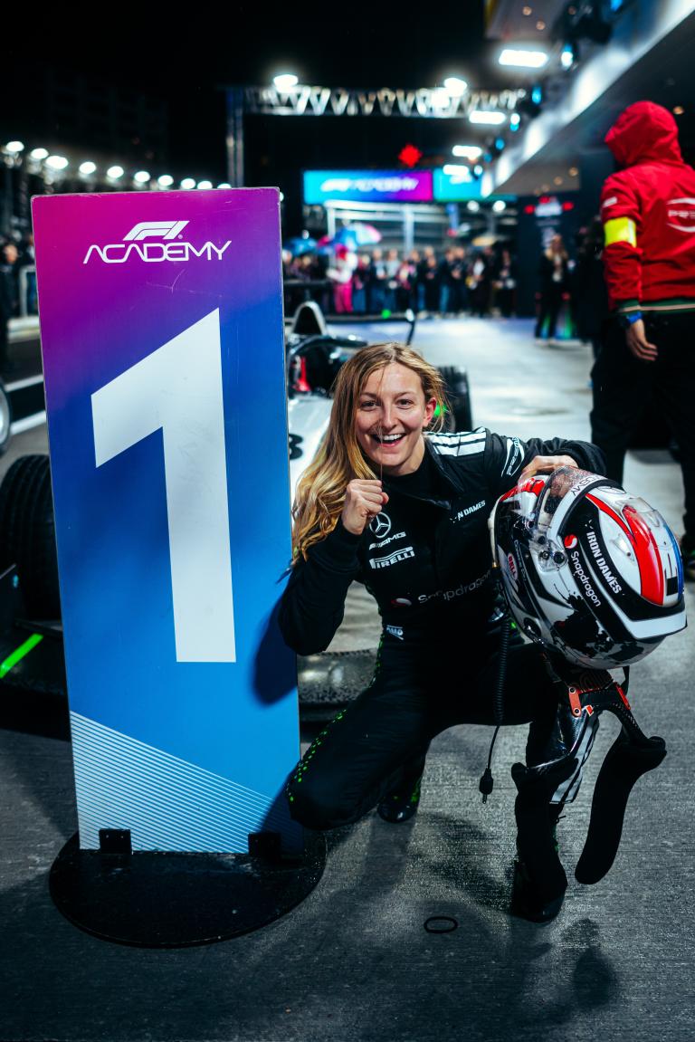 En tête du championnat depuis la manche de Montréal, la pilote Mercedes a finalement validé sa couronne lors de la quatorzième et dernière course de la saison disputée dans les rues de Las Vegas. Cinquième sur la ligne d'arrivée, elle a conservé une avance de 15 points sur sa principale rivale, Maya Weug de la Ferrari Driver Academy, troisième à l'arrivée.