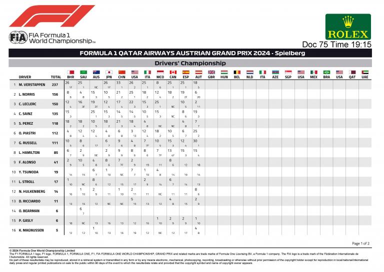 Logan Sargeant a été le dernier pilote classé pour Williams en 19e position, tandis que Norris, pénalisé de cinq secondes pour avoir dépassé les limites de la piste, a finalement abandonné après les dommages subis lors de sa collision avec Verstappen, concluant une journée pleine de promesses de manière décevante.