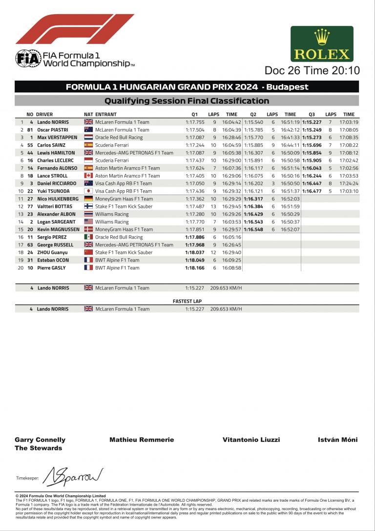 Lando Norris a décroché la pole position pour le Grand Prix de Hongrie 2024 dans une séance de qualifications marquée par des conditions météorologiques changeantes, deux interruptions par drapeau rouge et une fin de session particulièrement intense.