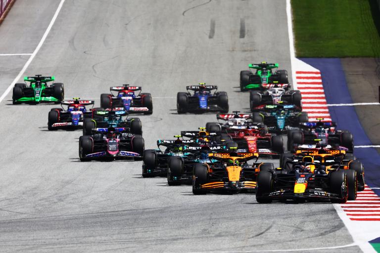 Lors du tour de formation, tous les pilotes étaient équipés de pneus medium C4. Après un départ avorté, Verstappen a pris un départ propre et a conservé sa position de leader au premier virage. Norris a tenté de s'imposer mais a dû défendre sa place contre une attaque de Piastri au virage 3. Derrière eux, Sainz a brillamment dépassé Russell à l'extérieur du virage 4, tandis qu'Hamilton gardait la sixième position devant Leclerc, Perez, Magnussen et Stroll. Les Alpines de Ocon et Gasly ont chuté hors du top 10.