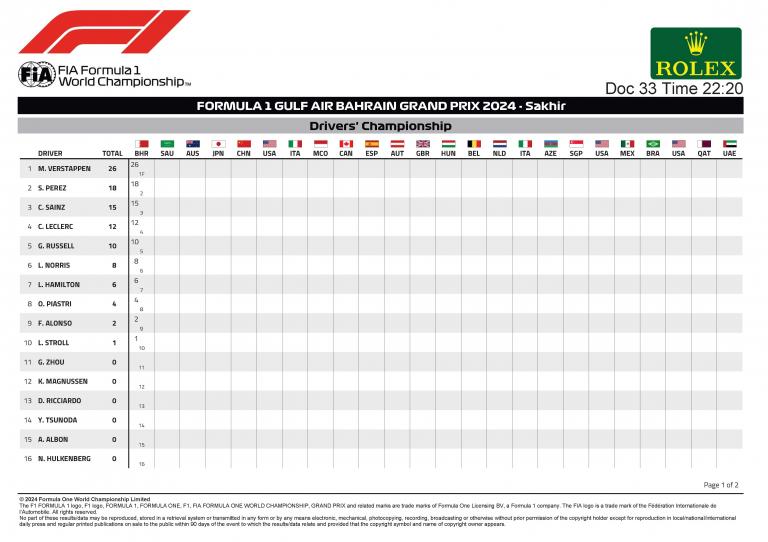 Au cours d'une course dominée de bout en bout, Max Verstappen a confirmé son statut de favori en menant le Grand Prix de Bahreïn 2024 du premier au dernier tour. Le pilote de Red Bull a franchi la ligne d'arrivée avec une avance considérable de 22 secondes sur son coéquipier, Sergio Perez, qui a su remonter de sa modeste position glanée en qualifications pour compléter un doublé Red Bull, illustrant la supériorité de leur stratégie et de leur gestion de course.