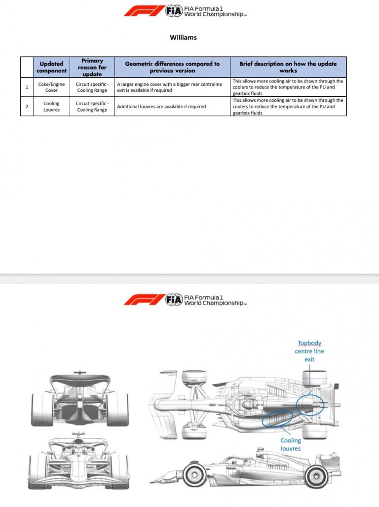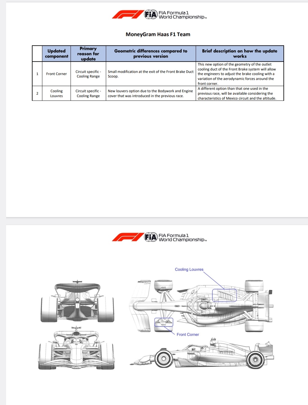 Récapitulatif des nouvelles pièces amenée à Mexico un peu chiche puisque la très grande majorité concerne des impératifs de refroidissement sur le circuit en haute altitude mexicain.