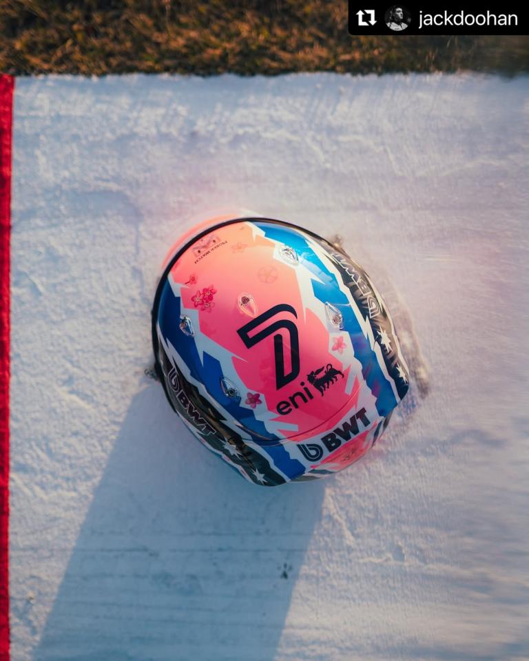 Le pilote australien Jack Doohan a aussi succombé à la saison des cerisiers en fleurs avec un casque aussi pop que printanier.