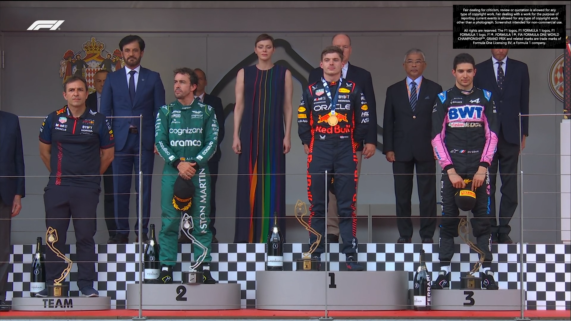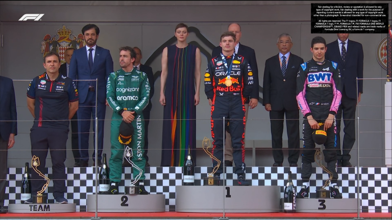 Victoire de Verstappen devant Alonso et Ocon.