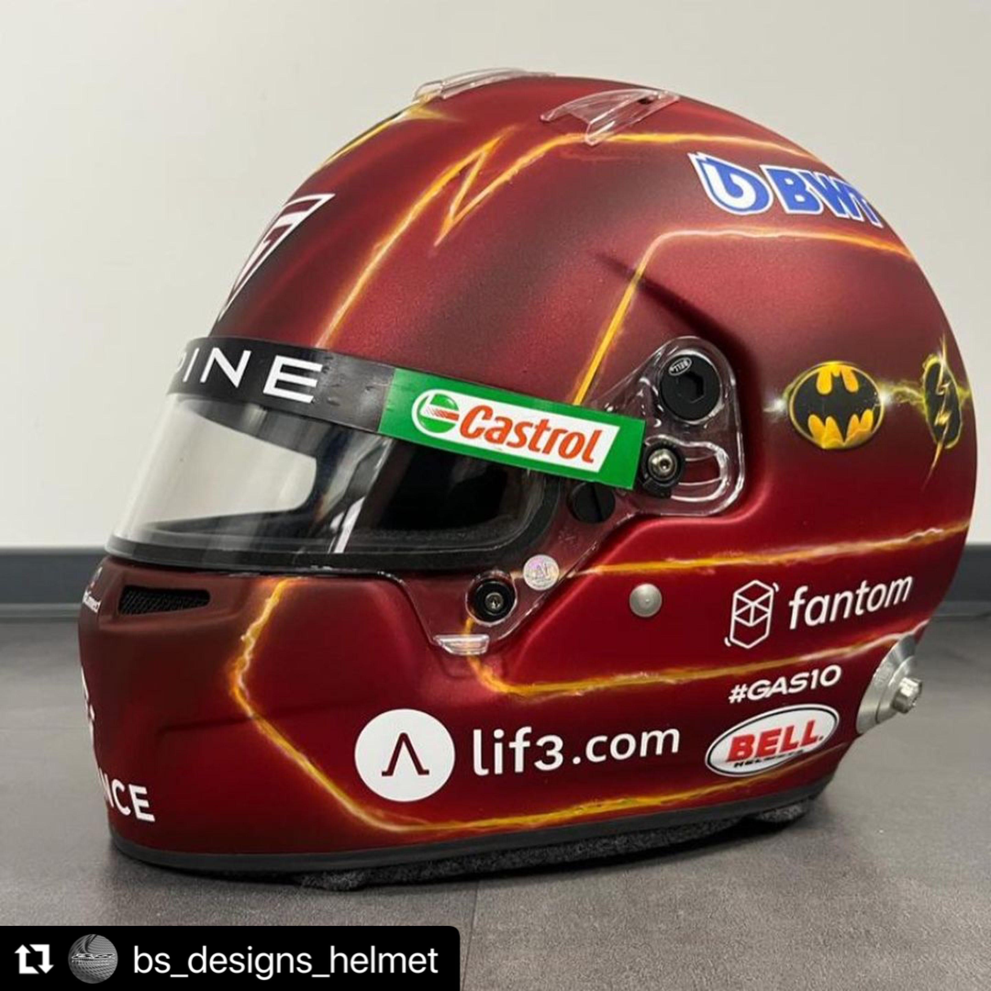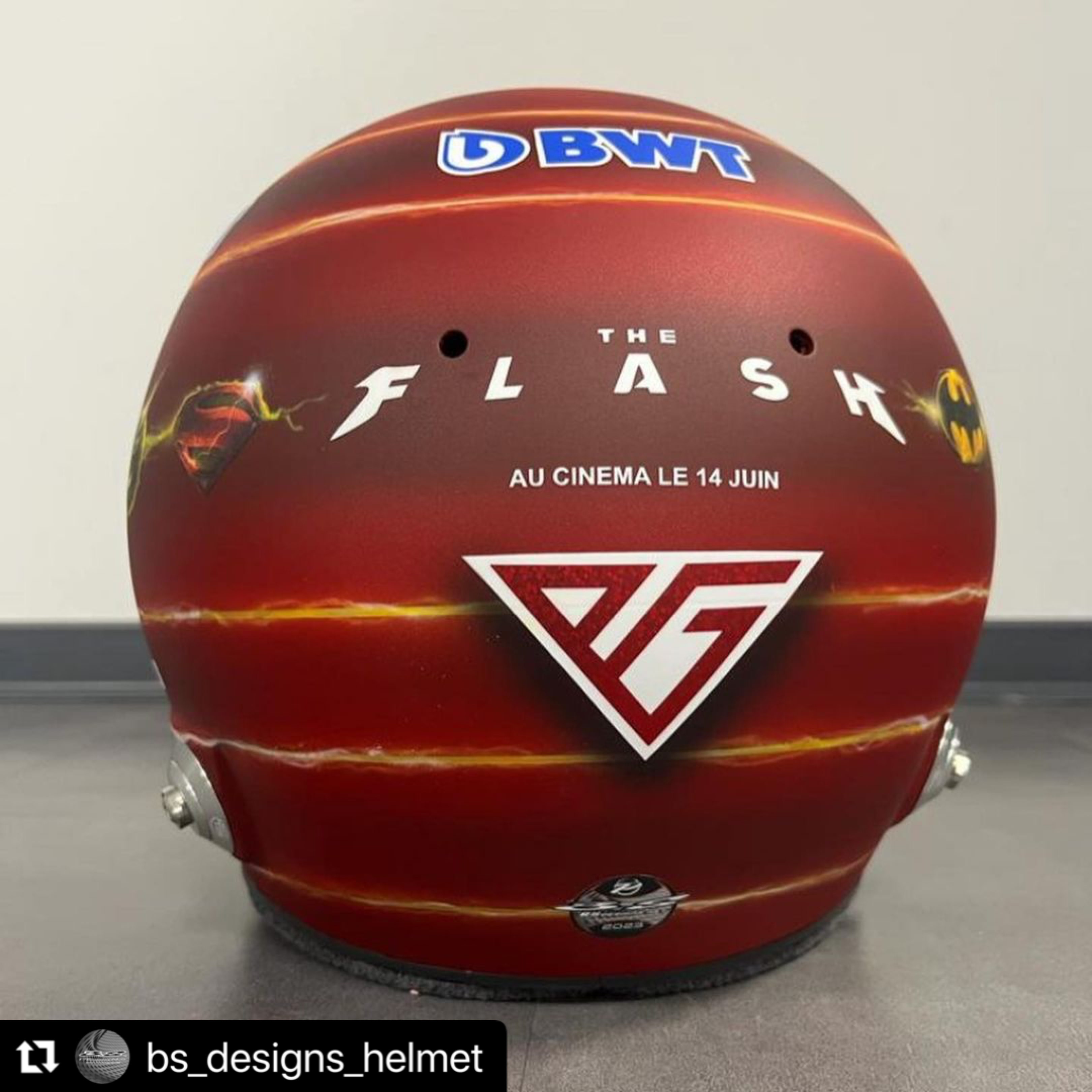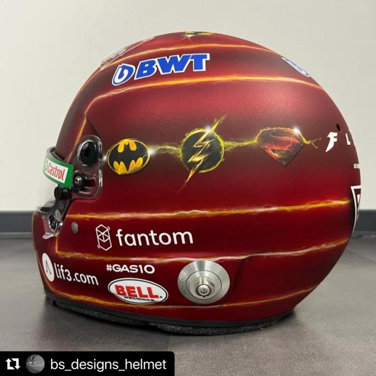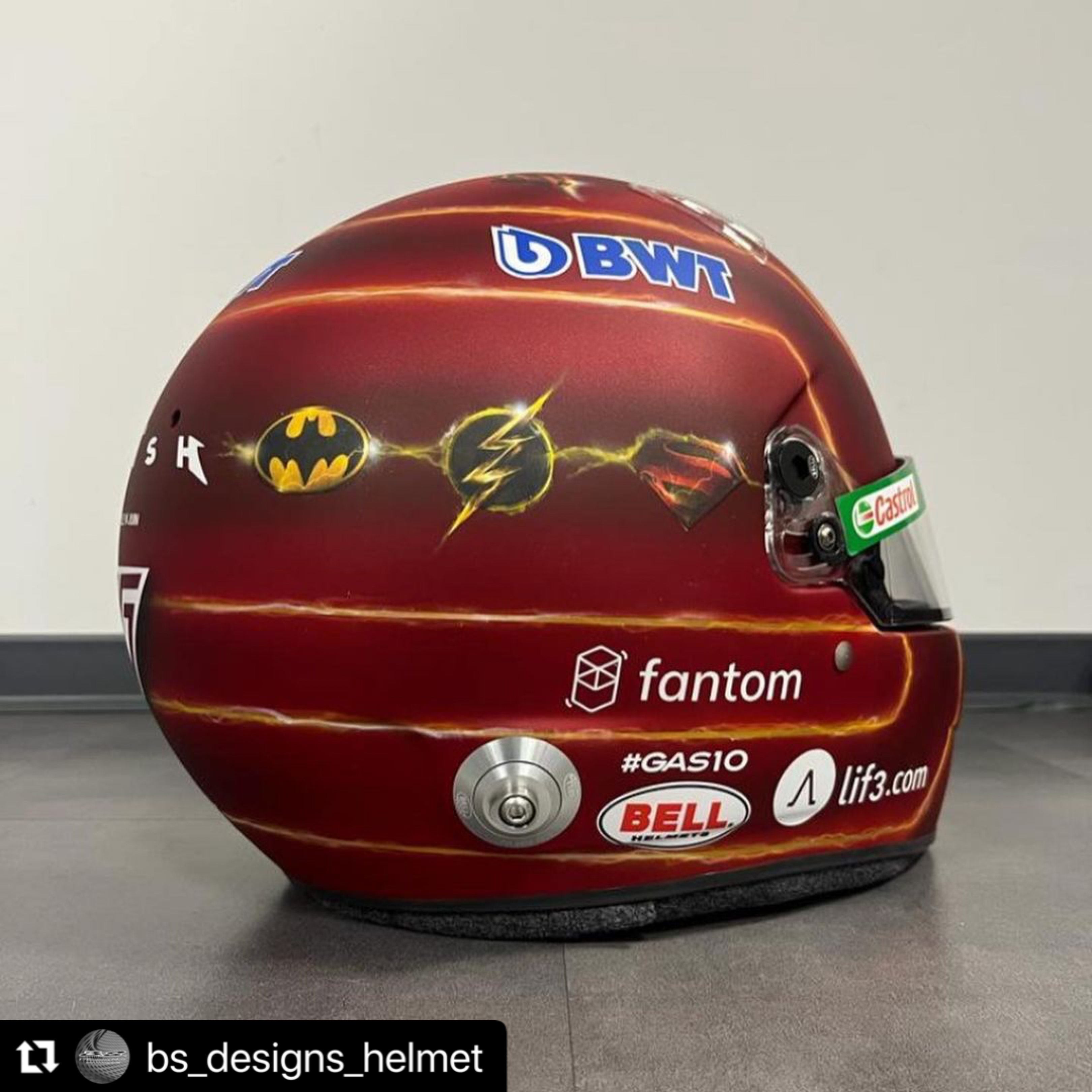 Le casque porté par Pierre Gasly au Grand Prix d’Espagne, promo pour le film "The Flash".