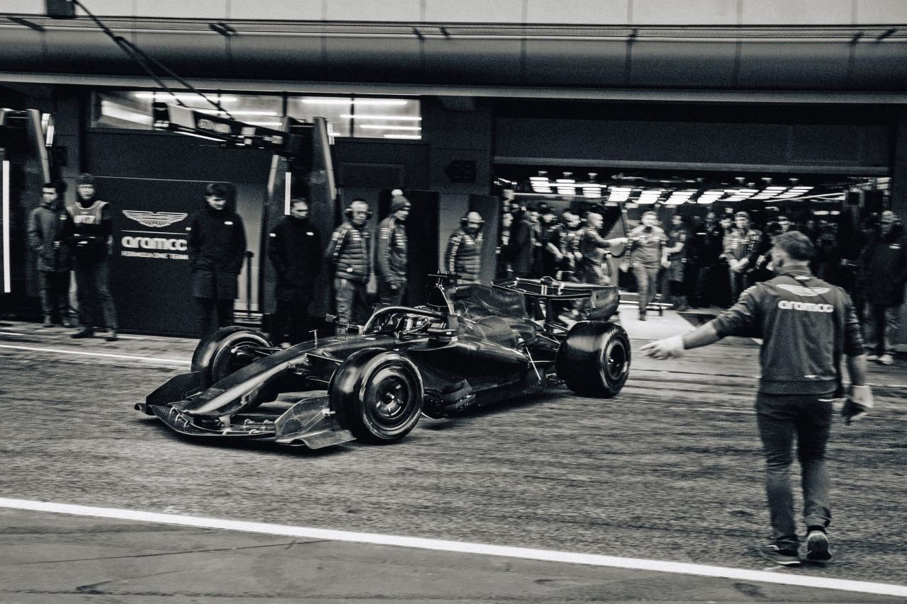 Deuxième mise à jour : Aston Martin a posté d'autres photos en noir et blanc mais la F1 a surtout posté une photo "couleur" (la voiture étant sans livrée) de l'AMR26 sortant de la voie des stands.