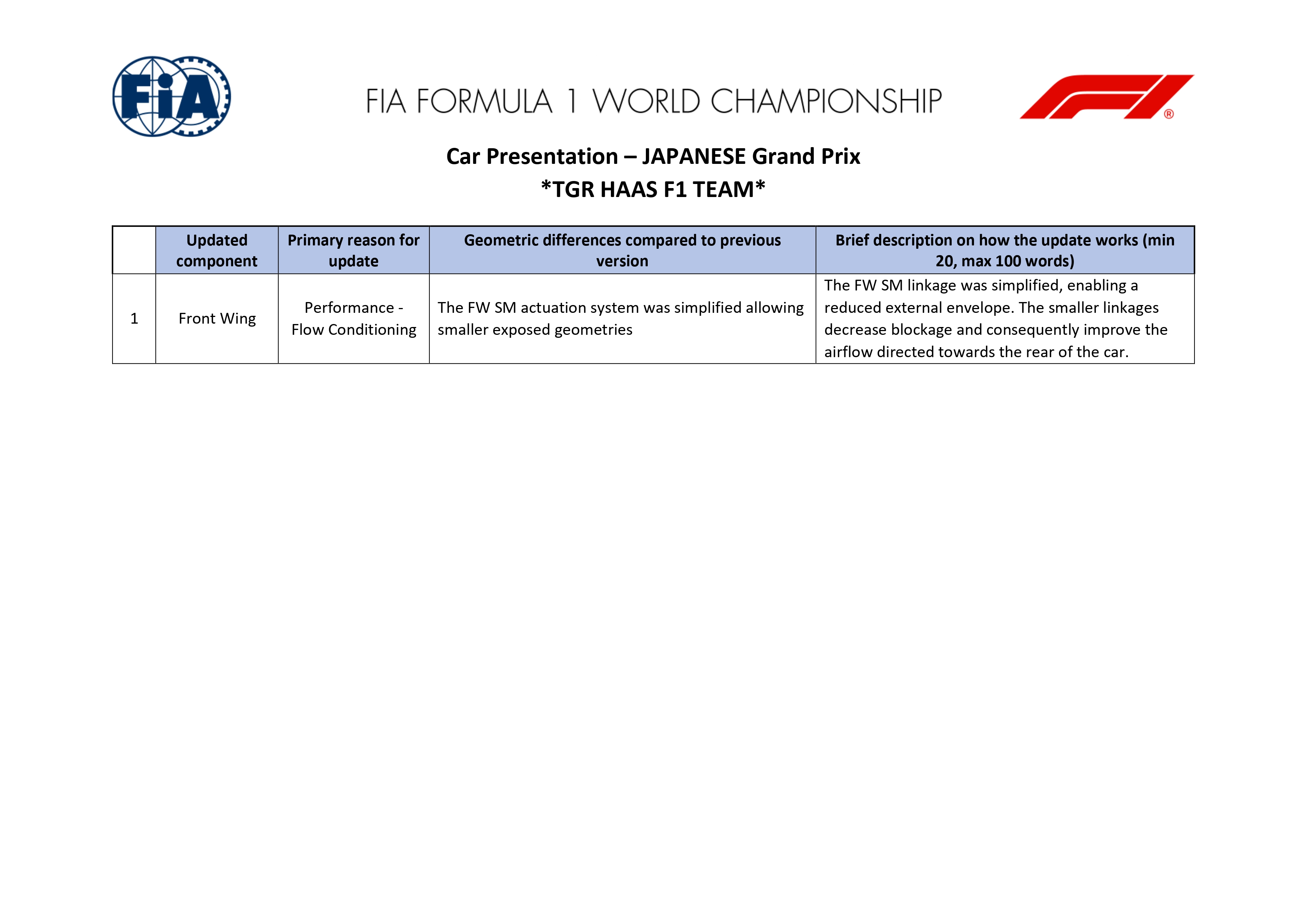 Au Japon, Haas introduit une évolution sur l'aileron avant de la VF-26, en travaillant sur le système d'actionnement de l'élément mobile.