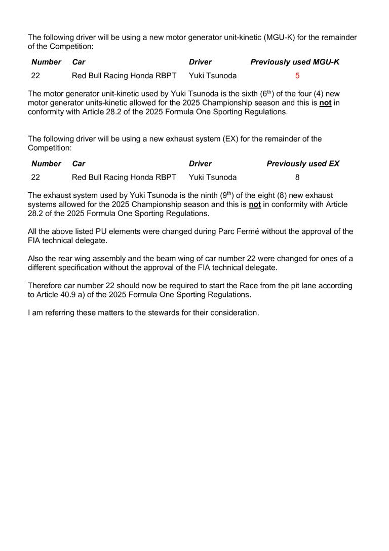 Ayant cassé le régime de parc fermé et avec plusieurs éléments changés, le pilote japonais Yuki Tsunoda prendra le départ depuis la voie des stands pour la course à Las Vegas.