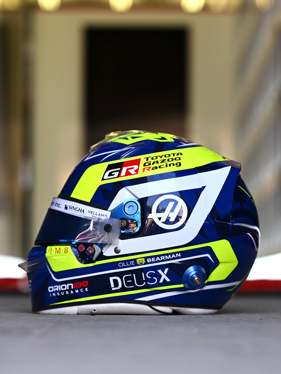 Oliver Bearman a dévoilé à Singapour son troisième casque spécial de la saison 2025. Le Britannique a choisi de le placer sous le thème de la constellation de l'ours, représentée sur le dessus du casque.