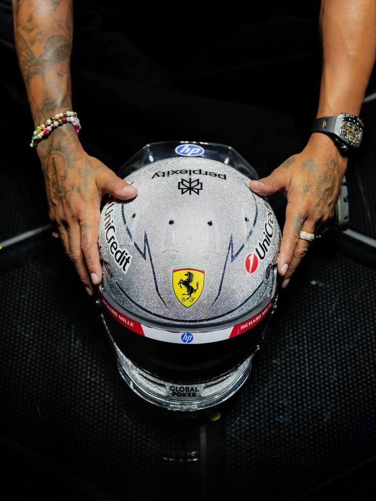 Pour Las Vegas, Lewis Hamilton adopte un casque qui joue pleinement avec l'esthétique et la "bling-blinguerie" de la ville.
