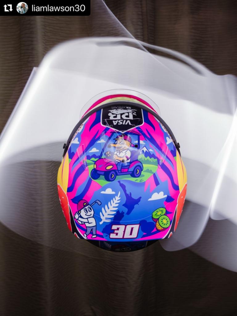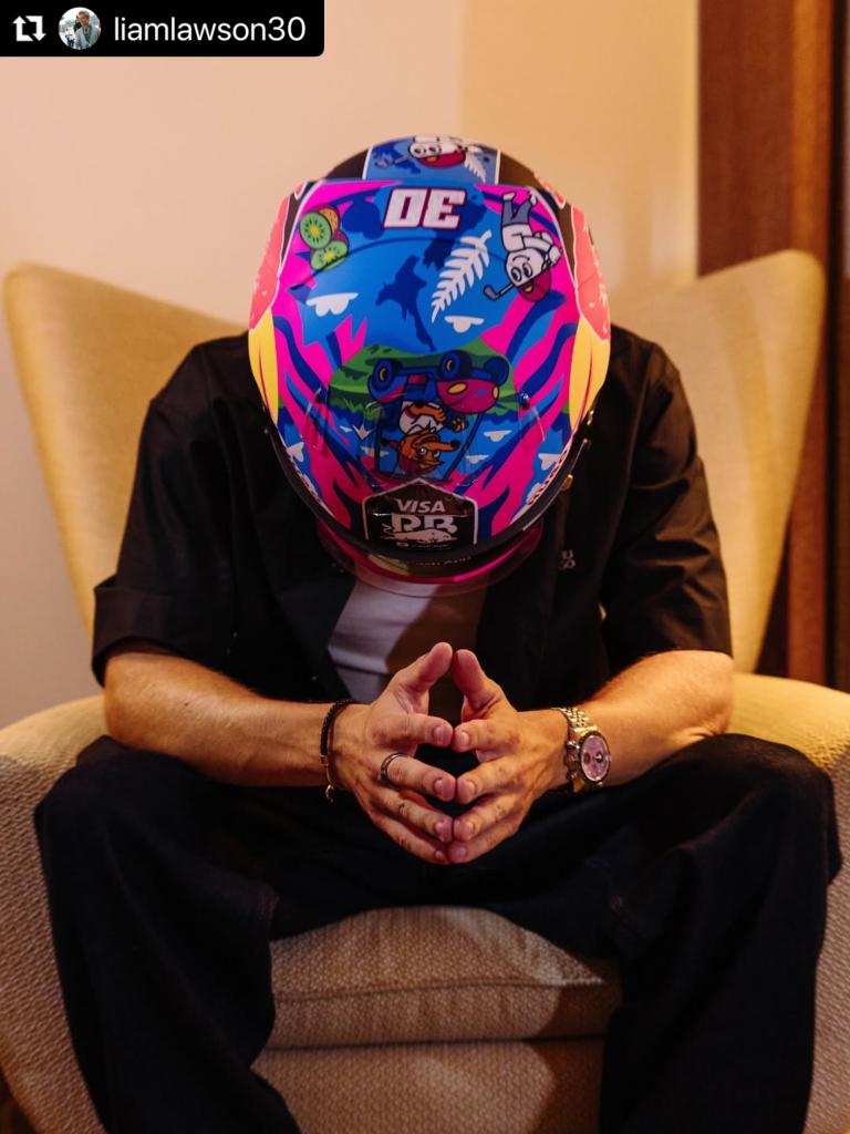 Liam Lawson a choisi de miser sur l'originalité pour son retour en Asie du Sud-Est. Le Néo-Zélandais a dévoilé à Singapour un casque aux couleurs vives.
