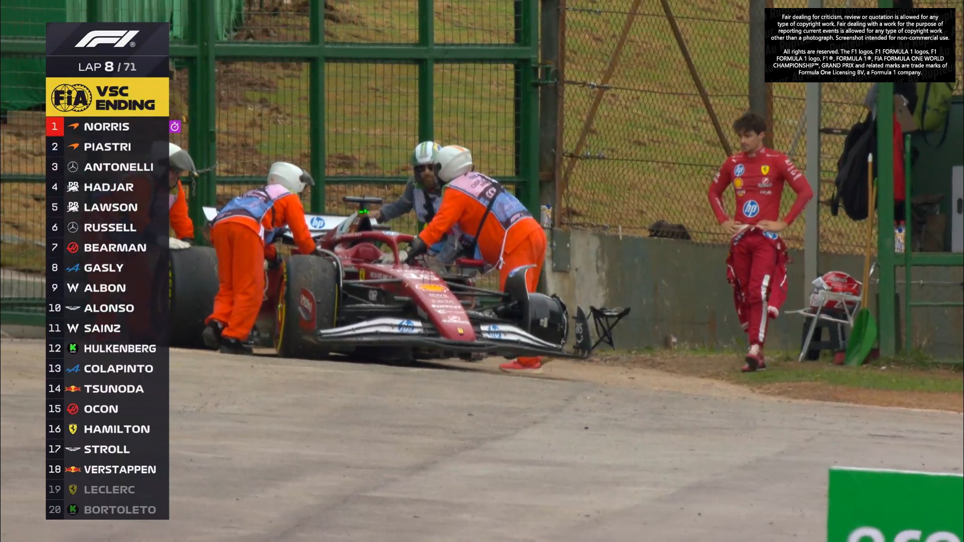Charles Leclerc s'est exprimé auprès de Sky Sports F1 après son abandon dès les premiers tours du Grand Prix du Brésil, consécutif au contact entre Oscar Piastri et Kimi Antonelli : "Oscar a été optimiste, mais Kimi savait qu'Oscar était à l'intérieur, je pense, et il a pris le virage comme si Oscar n'avait jamais été là."