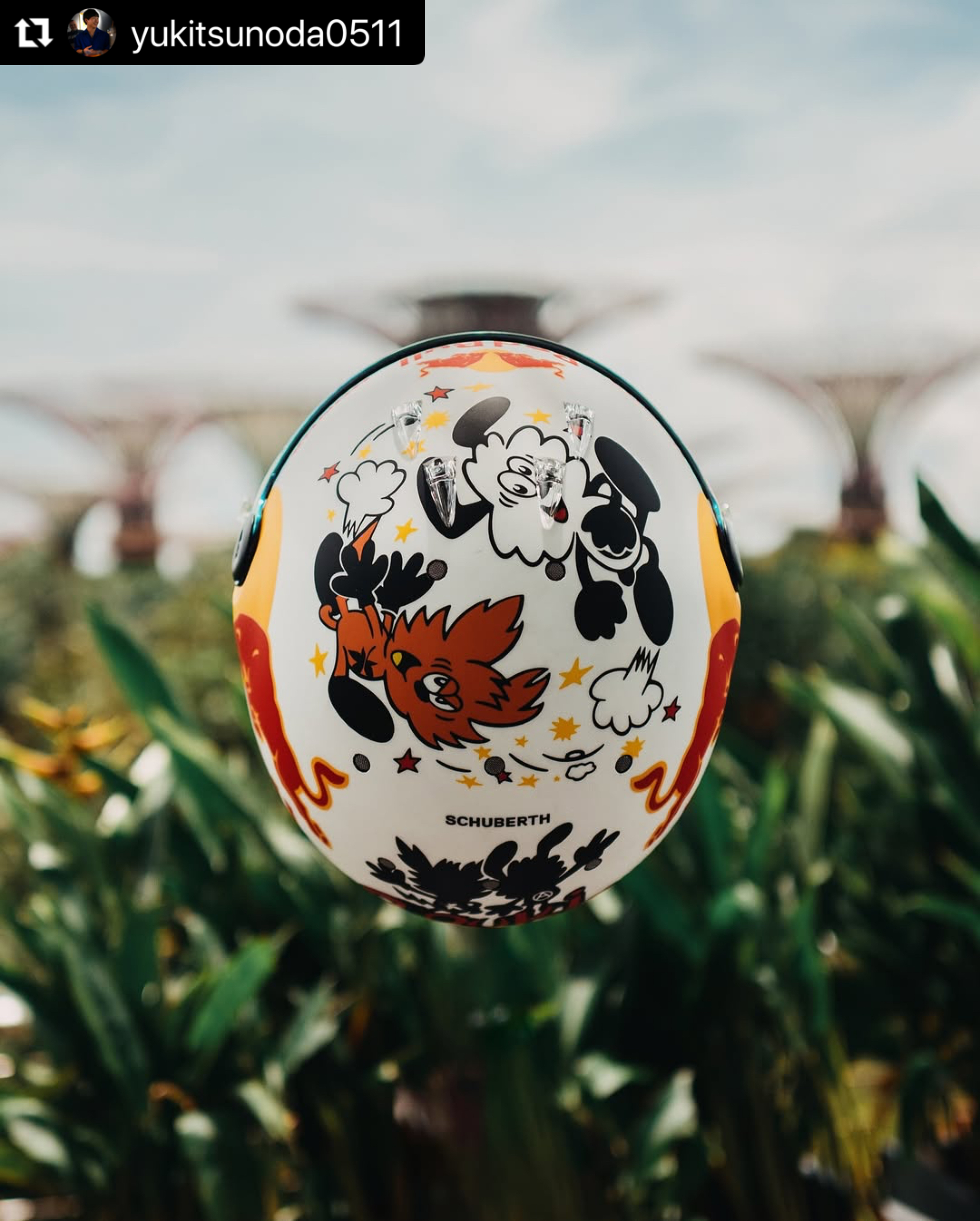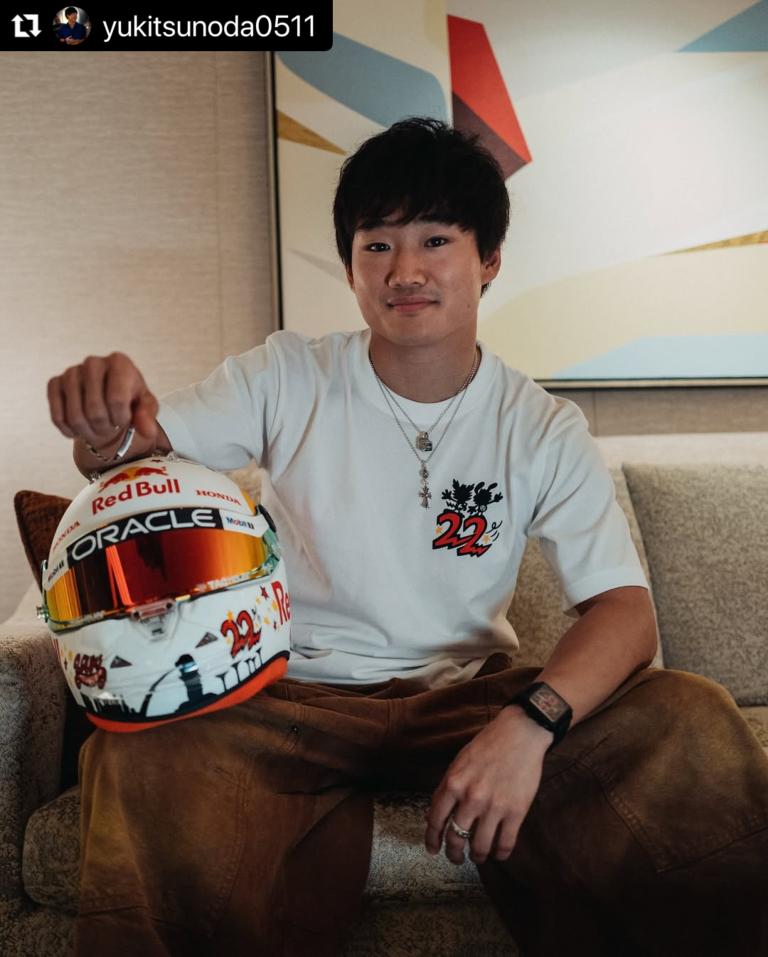 Yuki Tsunoda a lui aussi profité du Grand Prix de Singapour pour présenter un casque inédit.