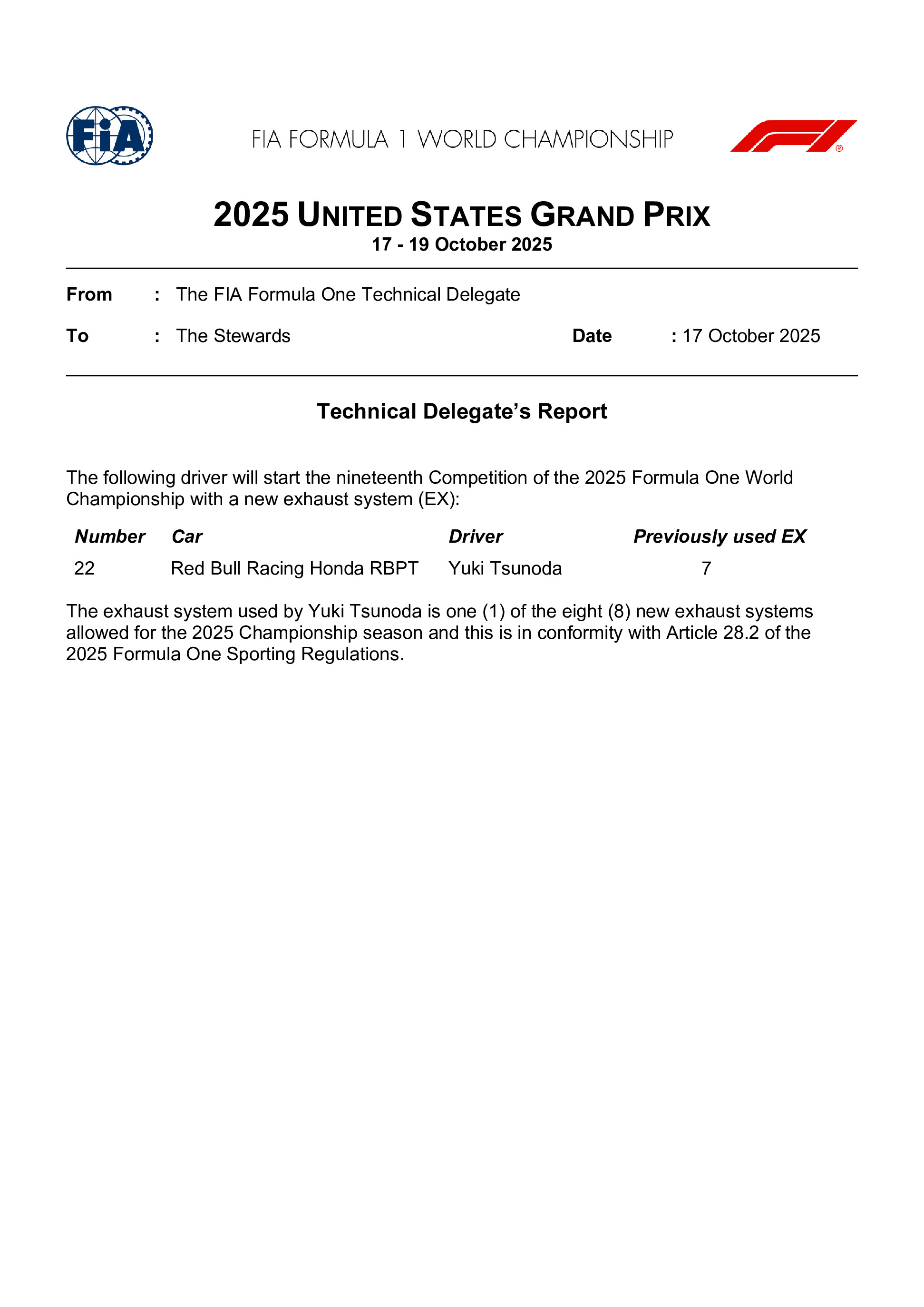 La Red Bull de Yuki Tsunoda aura droit à un nouvel échappement pour le circuit américain texan du COTA.