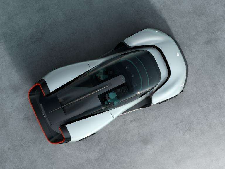La silhouette adopte un cockpit en forme de goutte d'eau intégré dans une architecture composée de conduits d'air et d'évidements. L'air est canalisé depuis l'avant du véhicule à travers ces passages puis expulsé à l'arrière afin de gérer les flux et limiter les turbulences. Les optiques avant en forme de croix participent à cette gestion aérodynamique, tandis qu'à l'arrière, un feu circulaire est intégré à la sortie principale d'air.